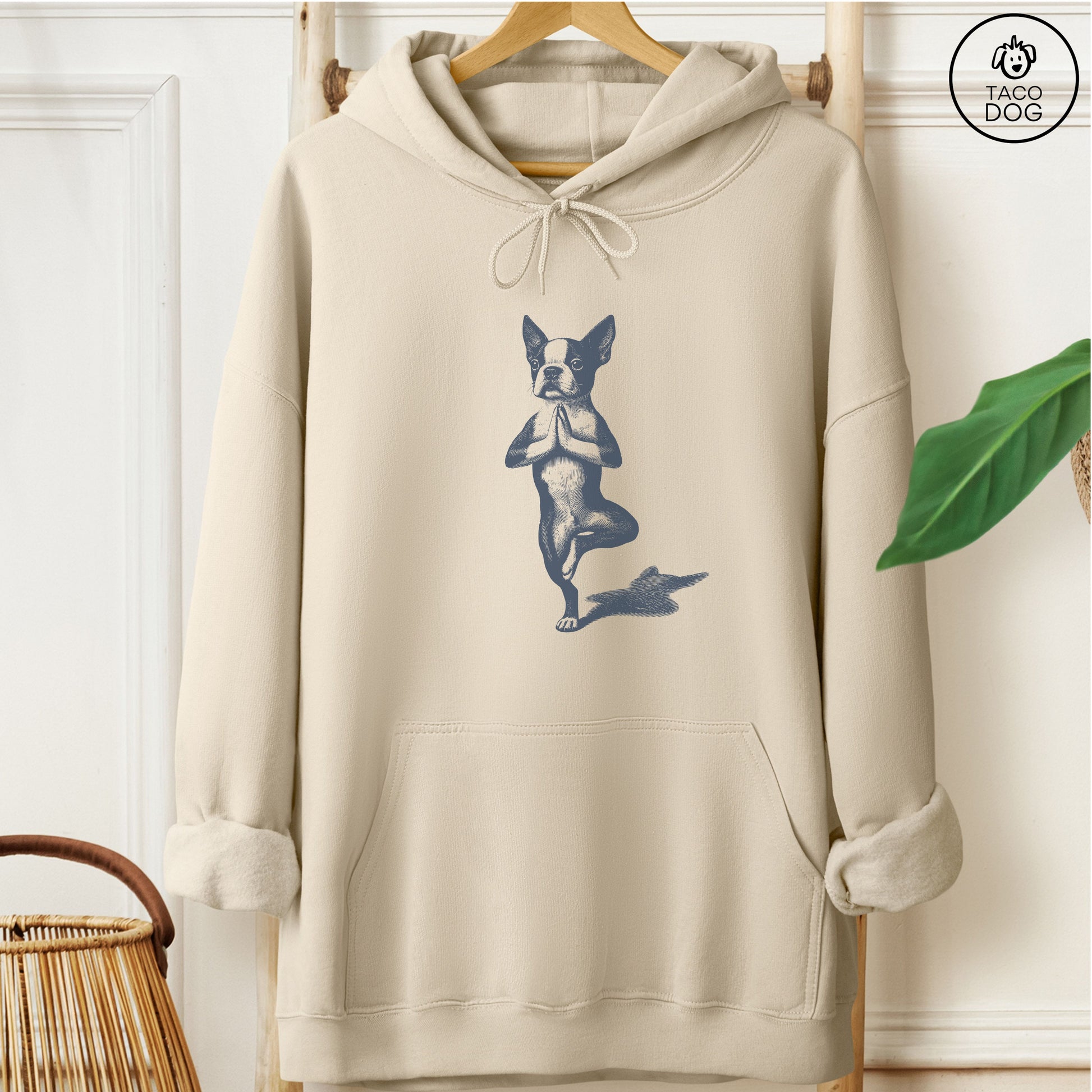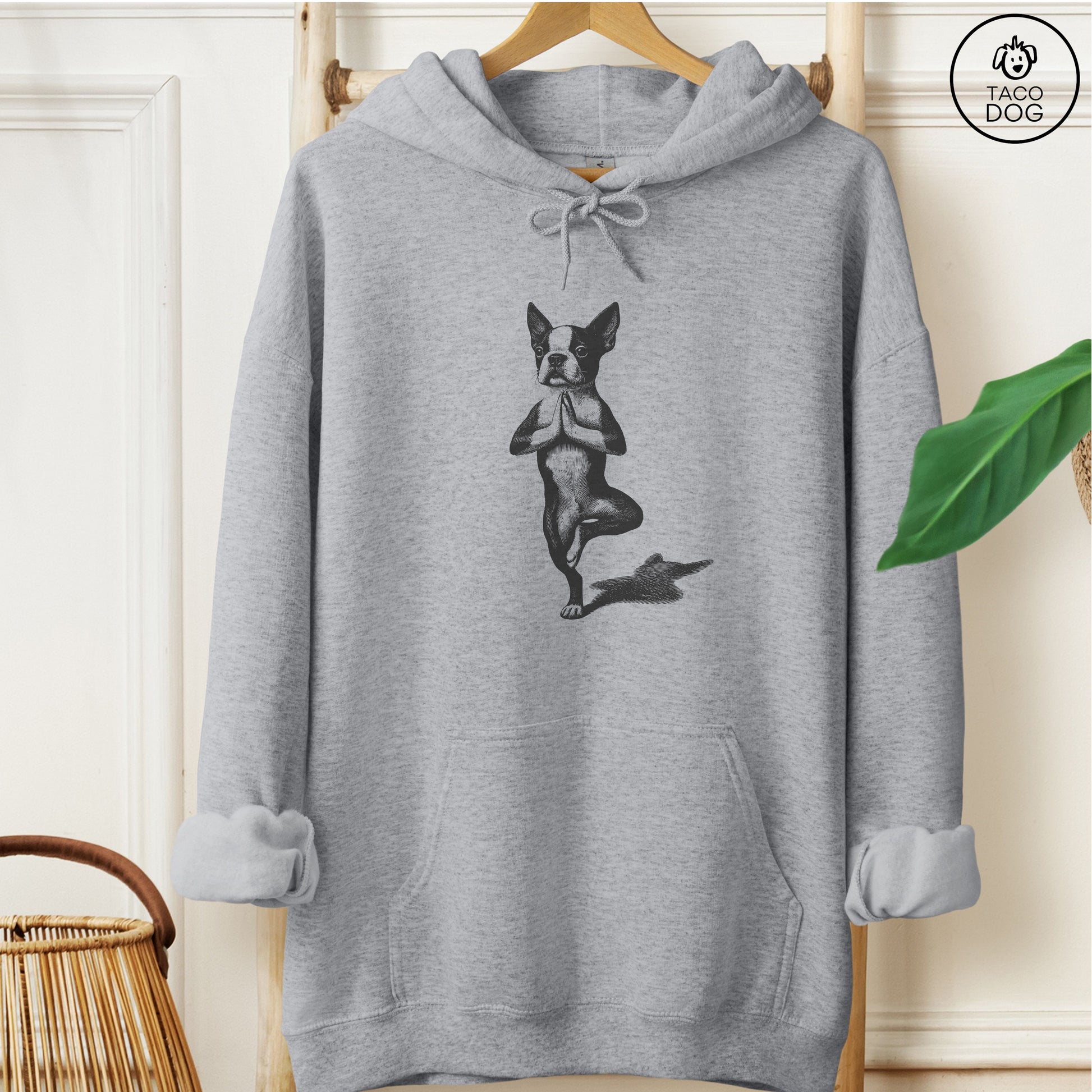 Boston Terrier Tree Pose Yoga Dog Hoodie